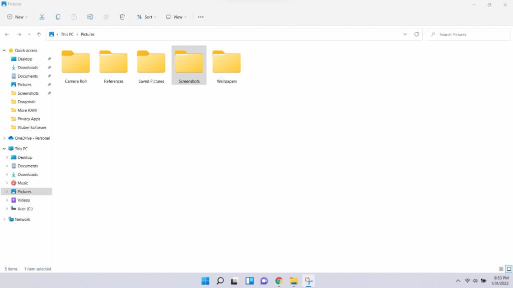 ただし、Pictures フォルダーに切り替えると、フォルダーの視覚的な性質をより適切に反映するようにデザインが変更されます。