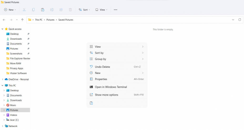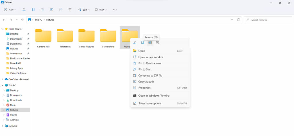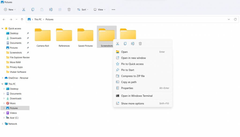 もう一つの大きな変更点は、再設計されたコンテキストメニューです。Windows 10以前のバージョンでは、エクスプローラー内の任意の場所を右クリックすると、長いオプションリストが表示されていました。今回のバージョンでは、より合理化されたメニューになり、表示されるオプションは最も便利なものから絞り込まれています。