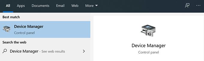 - ابحثعن デバイスマネージャ Cortana 検索を使用し、オンにします。