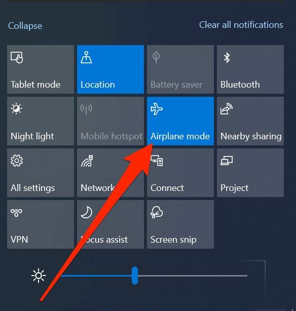 - ボックスが完全に青色に変わり、コンピューターで機内モードが有効になっていることを意味します。