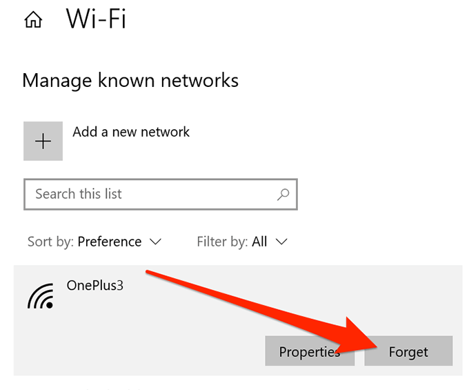 - お使いのコンピューターから接続したすべてのネットワークのリストが表示されます。接続に問題があるネットワークをクリックし、ボタンを選択してください。 忘れる (自分のことを)忘れる。