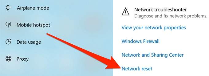 - 右側を下にスクロールして、 ネットワークリセット画面の一番下に表示されるはずです。