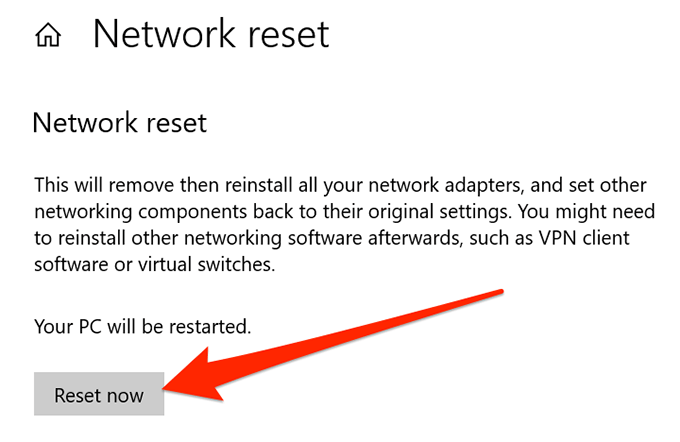 - ボタンをクリック 今すぐリセット 設定をリセットします。