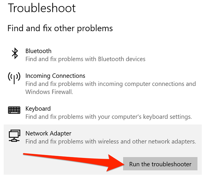 - ابحثعن ネットワークアダプター リスト内でクリックして選択 トラブルシューティングを実行する.