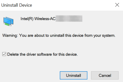 - ボックスにチェックを入れてください このデバイスのドライバソフトウェアを削除します をクリックします アンインストールこれにより、デバイスとそのドライバーがコンピューターから削除されます。