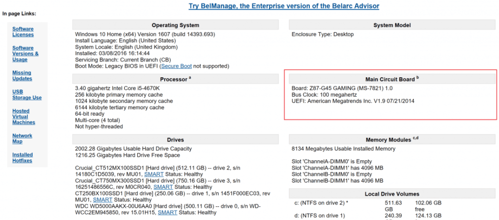 Belarc顧問 CPU-Zに似たWindows対応プログラムとして、CPU-Zがあります。システムを分析し、インストールされているすべてのハードウェアの完全なプロファイルを作成します。このタイプのソフトウェアは、現在のシステム仕様だけでなく、セキュリティアップデートの不足についても情報を提供します。