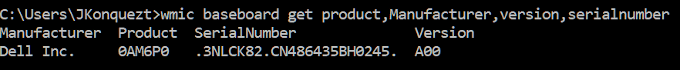 - タイプ wmicベースボード製品、メーカー、バージョン、シリアル番号を取得