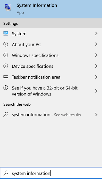 - タスクバーの検索バーに次のように入力します。 情報システム 彼は結果からそれを判断した。
