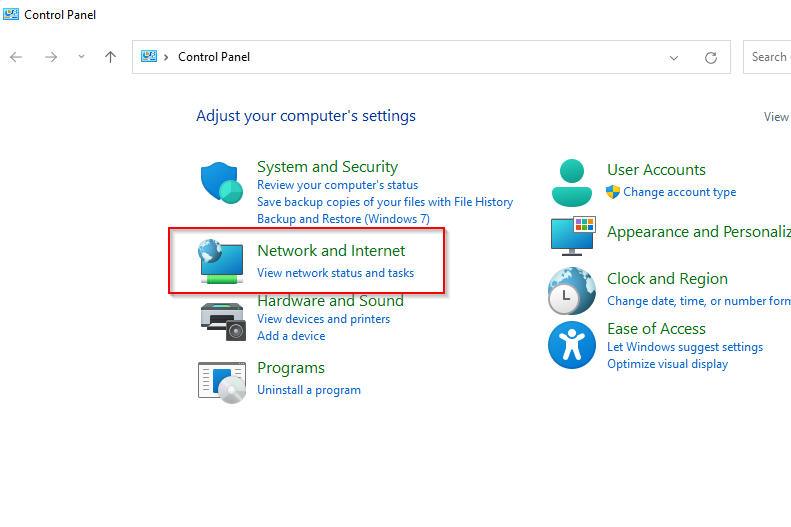 - まず、両方のコンピュータでネットワーク共有を有効にする必要があります。これを行うには、 コントロール スタートメニューで、 コントロールパネル。次に、選択します ネットワークとインターネット.
