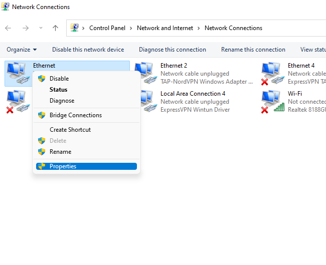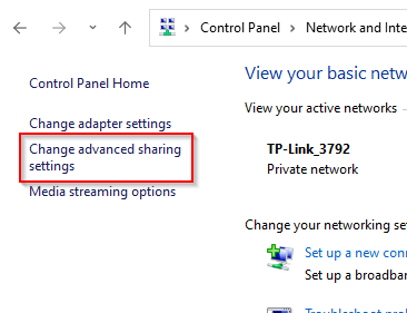- LANに接続していないため、各コンピュータのIPアドレスも設定する必要があります。これを行うには、「ネットワークと共有センター」に戻り、今度は以下を選択します。 アダプター設定を変更する.