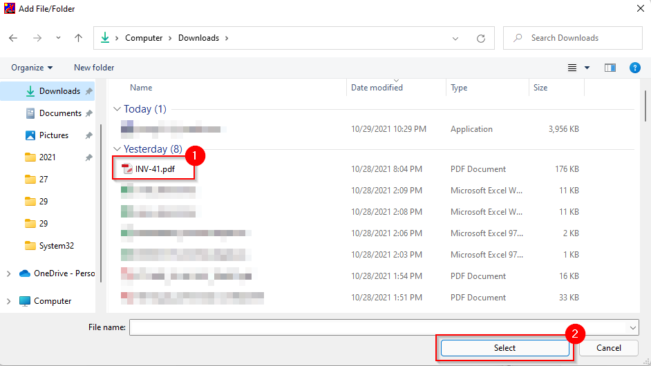 - 共有したいファイルまたはフォルダに移動し、選択してボタンをクリックします。 選択する (設定する)。