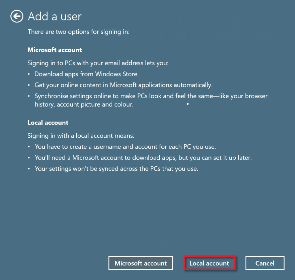 最後に、ローカルユーザーアカウントは、データをサーバーに送信する必要がないため、プライバシーが保護されるという利点があります。また、設定にインターネット接続やメールアドレスも必要ありません。