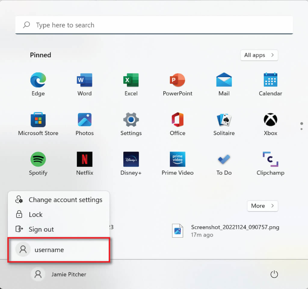 net localgroup administrators USER-ACCOUNT /add - アカウントが作成されたことを確認するには、スタートメニューに移動してプロファイルを選択してください。新しいアカウントがリストに表示されます。