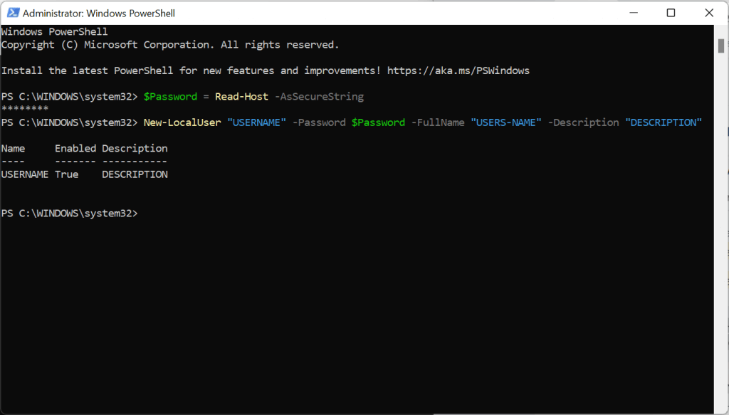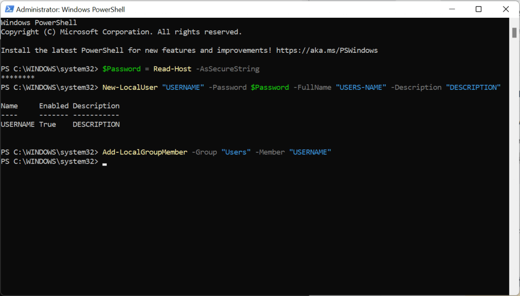 5. PowerShellを使用してローカルユーザーアカウントを作成する