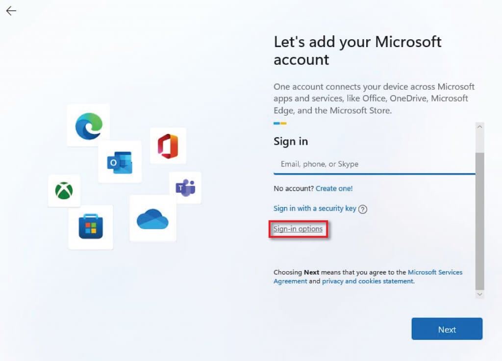 - Microsoft アカウントでサインインする代わりに、サインイン オプションを選択します。