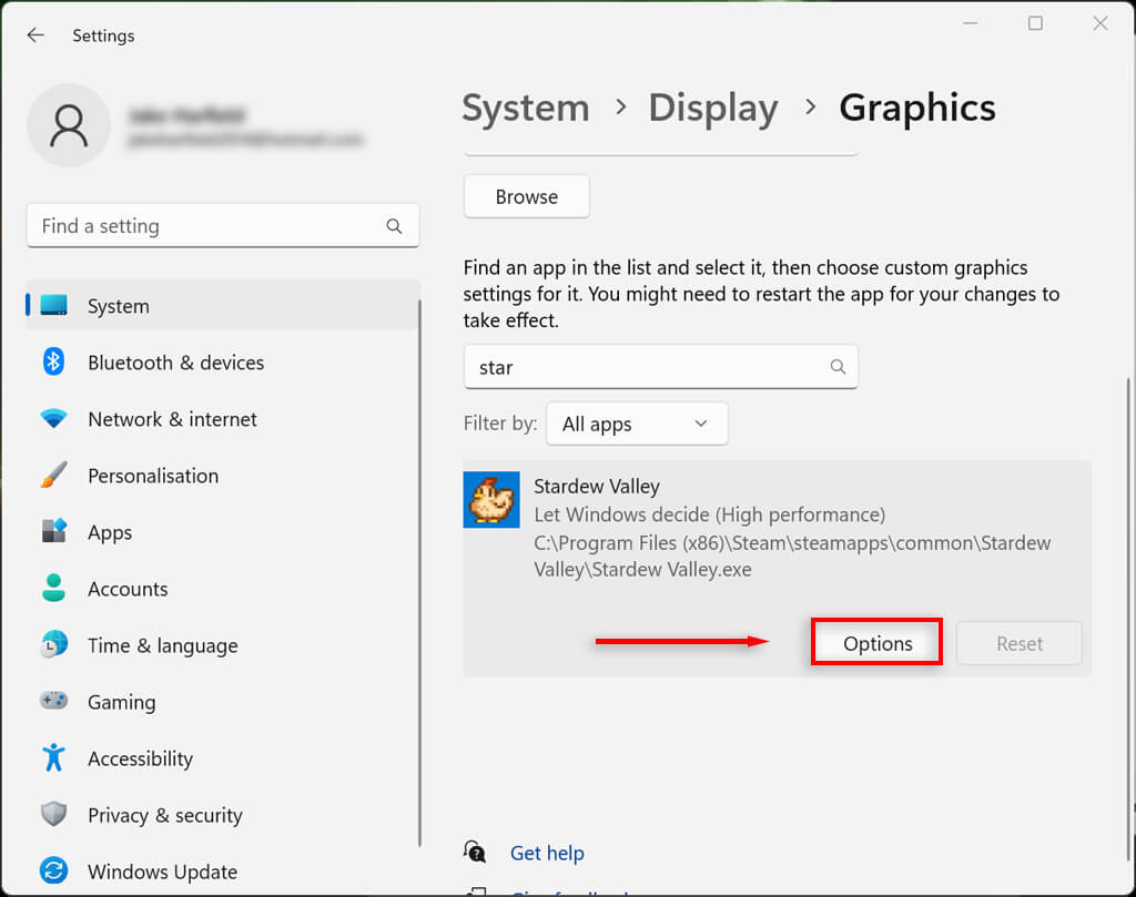 一部のアプリがぼやけて表示される一方で、画面の他の部分は正常に表示されるという問題が発生している場合は、グラフィック設定を調整することで、そのアプリの使用時の画質を向上させることができます。手順は以下のとおりです。