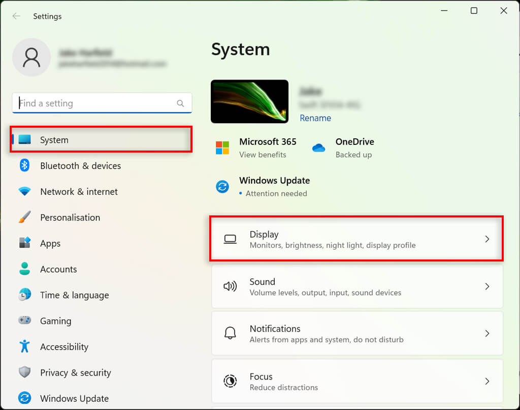 - 「システム」を選択し、「ディスプレイ」を選択します。