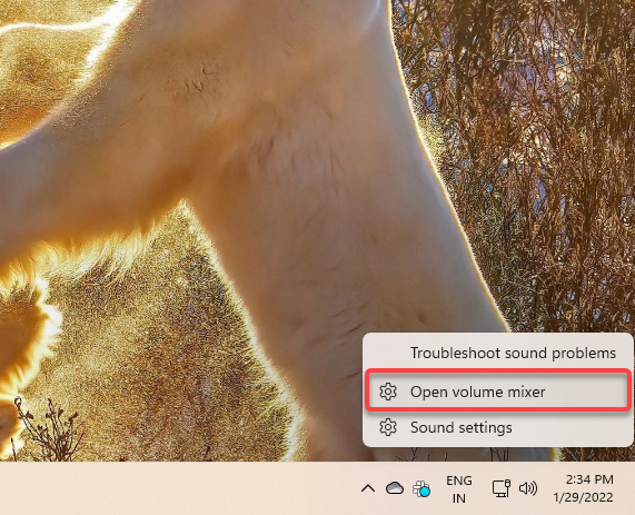 音量ミキサーを使用すると、特定のアプリケーションの音量レベルを確認できます。音量ミキサーを開くには、タスクバーの右隅にあるスピーカーアイコンを右クリックし、「音量ミキサー」を選択します。 ミキサーの音量レベルを開く.