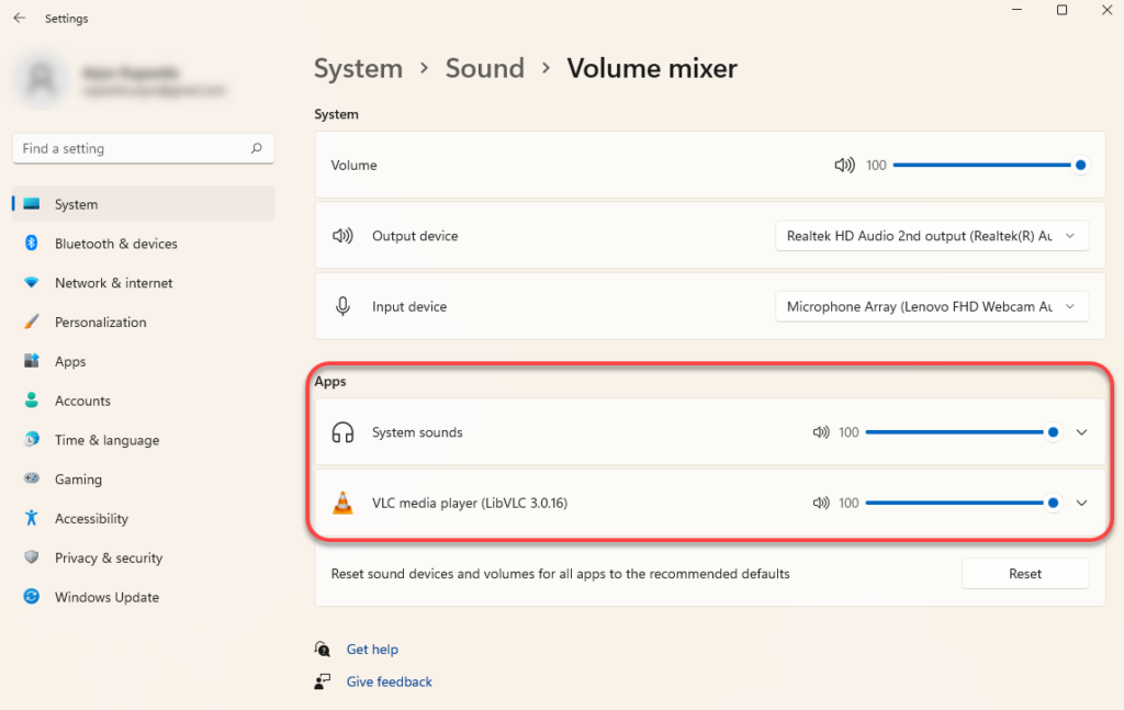 これらのアプリの音量レベルが0に近い場合は、ミュートを解除してください。テストとして音量を100に上げて、サウンドの問題が解決するかどうかを確認してください。