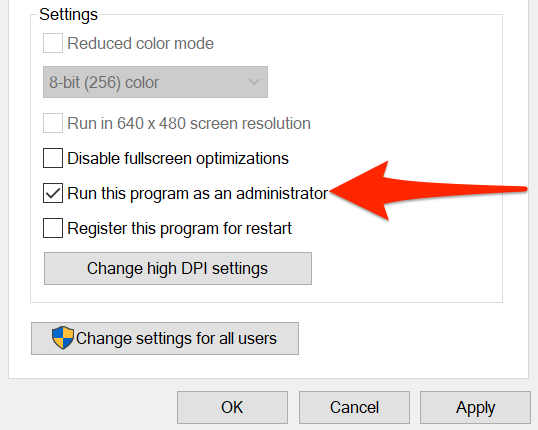 「このアプリケーションはお使いのコンピューターでは実行できません」というエラーが表示されなくなり、アプリケーションが正常に動作している場合は、アプリケーションが常に管理者モードで実行されるようにします。