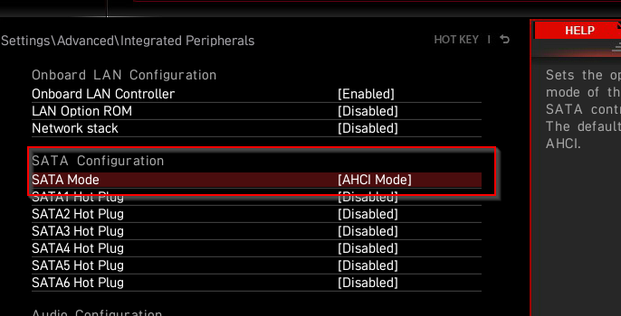 BIOS設定をいじるのに時間を費やしたり、最近BIOSをアップデートしたりした場合は、まずこの修正方法を試してみることをお勧めします。BIOSではSATAドライブのモードを選択できます。AHCI以外のモードを選択した場合は、修正する必要があります。