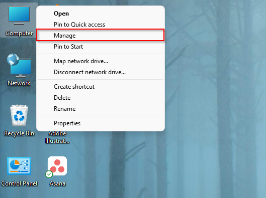 - 右クリック パソコン 選択します 管理 コンピュータ管理コンソールを操作します。