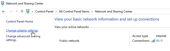 Windowsユーザーは、次の方法でDNSを更新できます。 操作盤。 に移動 ネットワークと共有センター > アダプター設定を変更する.