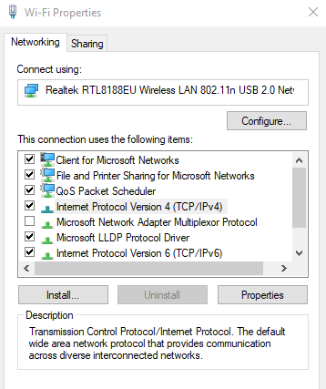新しいウィンドウが開きます。「ネットワーク」タブに移動し、「ネットワーク」の横にあるボックスにチェックを入れます。 4インターネットプロトコルバージョン(TCP / IPv4) أو 6インターネットプロトコルバージョン(TCP / IPv6)。完了したら、クリックします 特徴.
