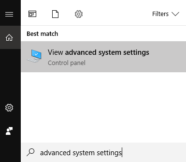 ابحثعن システムの詳細設定 を使用して Windowsサーチ.