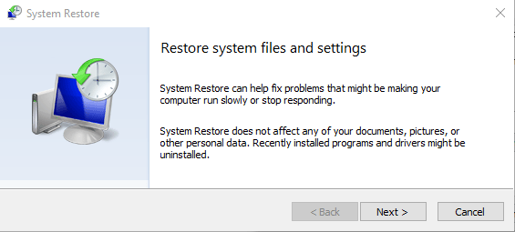 Windows オペレーティング システムを以前のバージョンに戻す作業が完了したら、エラー メッセージがまだ表示されるかどうかを確認します。