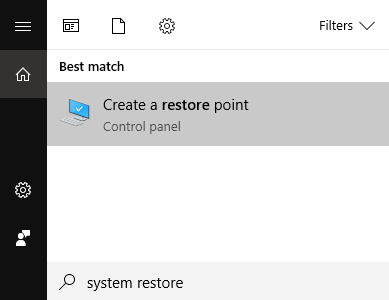 システムの復元を実行するには、次のように入力します。 システムの復元 في Windowsサーチ をクリックします 復元ポイントを作成する 結果で。
