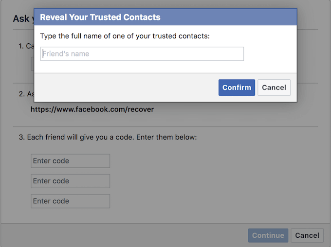 上記のすべての戦略が失敗した場合、次のステップはFacebookアカウントの回復を試みることです。 信頼されたコンタクト.