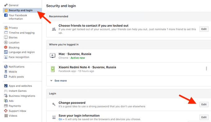 その後、誰かがあなたのアカウントをハッキングした疑いがある場合は、同じメニューに進みます。 ログインしている場所.