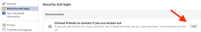- 以内に おすすめ (提案)、検索 ロックアウトされた場合に連絡する友達を選択してください (アカウントがロックされた場合に連絡する友達を選択してください)をクリックし、 編集 (修正)。