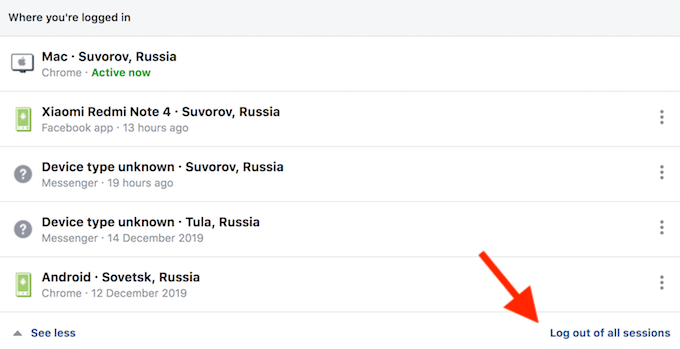 したがって、いずれかのデバイスでアクティブな Facebook セッションがあることがわかった場合は、次の手順に従ってください。