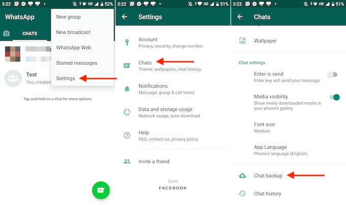 サードパーティ製のツールを使う必要はありません。GoogleアカウントをWhatsAppのバックアップにリンクするだけで、WhatsAppは新しいメッセージを自動的にGoogleドライブにバックアップします。GoogleドライブからWhatsAppをバックアップおよび復元する方法は次のとおりです。