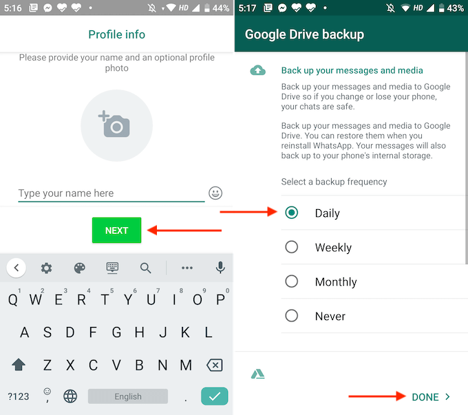 - セットアップが完了すると、新しいスマートフォンでGoogleドライブのバックアップを設定するオプションが表示されます。ここでは、以下のオプションを選択することをお勧めします。 毎日。次に、ボタンをクリックします クリックします.