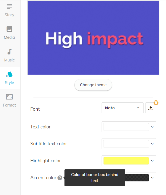 ロゴを追加し、配色を設定し、使用するフォントを選択またはアップロードして、動画にブランドを追加します。
