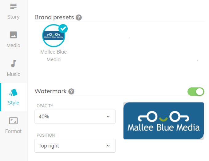 横にあるスイッチを切り替えることで、ロゴをアップロードするかどうかを選択できます。 透かしボタンが緑色の場合、アップロードしたロゴがビデオに表示されることを意味します。