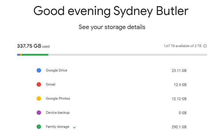 ドライブ全体をバックアップする場合、2TBオプションが最もコストパフォーマンスに優れています。これは、Googleが200GBオプションと大きな差をつけているためです。複数のパソコン、モバイルデバイス、そしてすべてのメッセージをこの単一のストレージパッケージにバックアップできることにご留意ください。また、このストレージを家族グループのメンバーと共有することもできます。つまり、2TBは思ったほど高価ではないかもしれません!