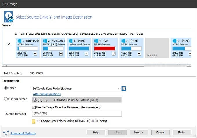 解決策は、Google バックアップと同期で同期用に指定されたフォルダのいずれかにディスクイメージをバックアップすることです。Macrium Reflect は増分バックアップをサポートしているため、このファイルは設定された間隔で更新されます。Google がファイルの変更を検出すると、新しいバージョンがクラウドにアップロードされます。