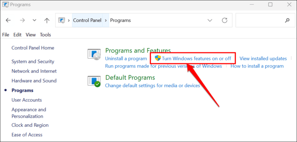 機能をオフにしてから再度オンにすることで、.NET Framework エラーを手動で修正できます。
