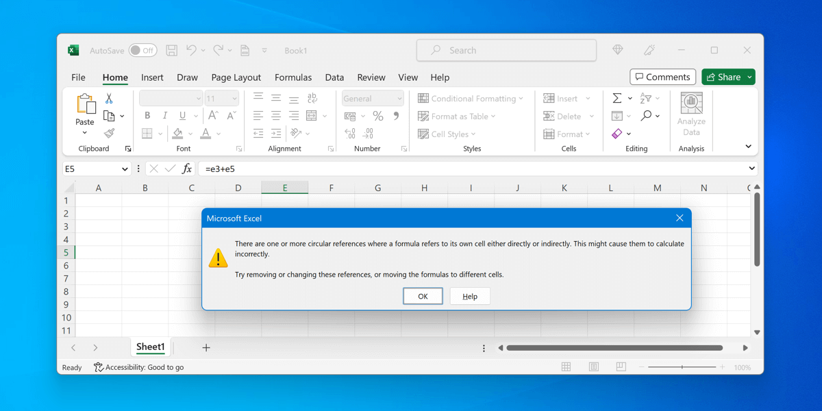 これらの参照を修正するには、数式またはセル参照を適切に変更してください。例えば、他の場所で使用しているデータをコピー&ペーストし、数式を更新してそのデータを使用するようにすることで、循環参照ループに陥ることなく参照できるようになります。