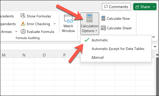 Excelはメモリを大量に消費するため、ワークブックのサイズが大きいほど、データの再計算が難しくなります。Excelの数式が期待どおりに動作しない場合(自動更新を有効にしている場合でも)、特に大量のデータを一度に変更した場合は、手動で再計算を強制する必要があるかもしれません。
