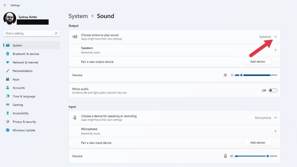コンピューターに複数のオーディオデバイスが搭載されている場合、オーディオが間違った出力デバイスにルーティングされているため、音が出ないことがあります。典型的な例としては、モニターのオーディオ出力が挙げられます。HDMIやDisplayPort接続でもオーディオが伝送され、多くのモニターにはスピーカーやヘッドホンジャックが搭載されています。Windowsは、このオーディオデバイスを最後に接続されたオーディオデバイスとして検出し、切り替える場合があります。